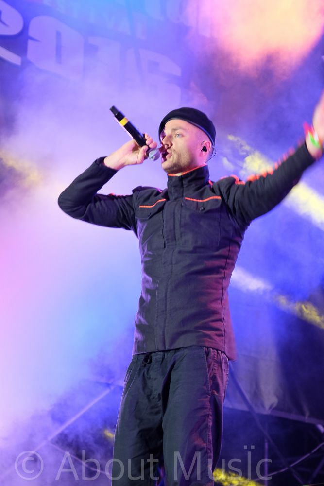 Vor der Bühne wird es nach diesem Konzert voll, sehr voll sogar. Der heutige Hauptakt beginnt in weniger als einer Stunde und die ersten, vor allem jüngeren Fans, sichern sich ihre Plätze. Um 22:15 Uhr fällt dann das große weiße Tuch auf der Bühne und gibt nach fast dreijähriger Konzertpause den Blick auf den K.I.Z Panzer, die monumentalen Statuen und die vier Jungs aus Berlin frei. Was jetzt folgt ist, so ehrlich muss man sein, Geschmacksache. Bereits nach zwei, drei Songs verlassen die ersten Besucher ihren Platz vor der Bühne, andere hingegen singen innbrünstig jede Textzeile mit. Die in jeder Geste, jeder Ansprache, jeder Songzeile offen zur Schau gestellte Provokation muss man mögen. Ob nun Lieder über Hitler oder der Auftritt als Militärdiktatoren mit Maschinengewehren, die Provokationskunst der „Kanibalen In Zivil“ ist beinahe grenzenlos. Aber egal ob man nun zu denen gehört, die die Band verehren und feiern oder zu jenen, die eher verhalten reagieren, eins muss man den Berlinern lassen: Der Beat ist mitreißend, die Bühnenshow ausgefallen und extravagant, aber das erwartet man irgendwie auch von einer Band, die sich selbst als „die wichtigste Band der Welt“ bezeichnet, oder? Und so singen zum Ende des Konzertes dann doch bestimmt mehr als die Hälfte der Festivalbesucher gemeinsam in den Nachthimmel „Und wir singen im Atomschutzbunker – Hurra, die Welt geht unter.“ Es bleibt zu hoffen, dass sie die Sticheleien dieser Zeilen in Tagen wie diesen auch verstehen.