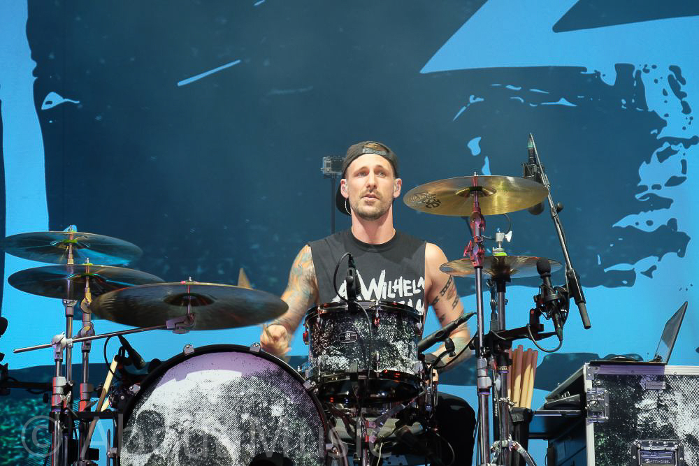 Jetzt haben auch wir erst einmal eine kleine Verschnaufpause nötig und so geht’s erst wieder gegen halb zehn vor die Hauptbühne, wo, glaubt man Kritikern, der Auftritt einer der besten Livebands der Welt ansteht – SUM 41. Gewohnt laut, lärmend, fast donnernd legen die Kanadier gleich vom ersten Song an los. Die Menge hüpft und springt, genießt bei schönstem Festivalwetter die Mischung aus Rock, Heavy Metal und Punk und unterstützt Deryck Whibley bisweilen extrem textsicher und zwar ganz gleich ob es um die bereits 2001 veröffentlichte Hitsingle „Fat Lip“ geht oder um einen der neuen Songs der erst im Oktober erscheinenden Scheibe „13 Voices“. Die Kritiker haben Recht behalten und so verhallen die Zugabe-Rufe erst lange nachdem die Band die Bühne schon längst verlassen hat.