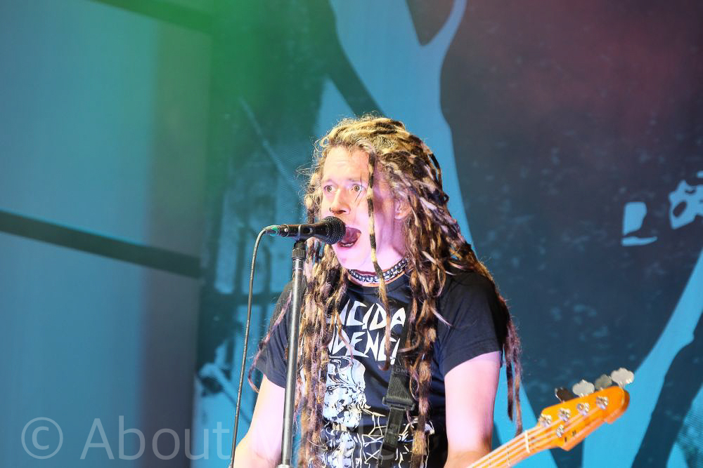 Um pünktlich den Headlinder des Abends – Limp Bizkit – zu sehen, müssen wir die Herren aus Brooklyn leider verfrüht verlassen und bekommen gerade noch so einen Platz in der übervollen Arena vor der Hauptbühne. Die Erwartungen sind ziemlich groß, haben uns die Herren um Redcap Durst und dem stets mit weißem Make-Up auftretenden Wes Borland im September 2010 in der Porsche Arena in Stuttgart doch geradezu aus den Socken gehauen. Es lässt sich gut an, die ersten Songs sorgen für Euphorie im Publikum, alle sind am Bouncen, Hüpfen und „Rollen“, kurz gesagt: restlos begeistert! Wir genießen den einst so innovativen, mitreißenden Mix aus peitschenden Rhythmen, massiven Gitarrenriffs und Hip-Hop Elementen und erinnern uns gern an unsere Jugend, als Limp Bizkit in den 90er Jahren den aufkommenden Nu-Metal Sound maßgeblich prägten. Doch dann beginnt das Konzert etwas zu enttäuschen: Anstatt ihre eigenen großen Hits zu spielen, werden Cover Songs gespielt z.B. „Feels Like Teen Spirit“ von Nirvana oder „Move Bitch“ von Ludacris und „Party Up (Up In Here)“ von DMX. Auch die Übergänge zwischen den einzelnen Songs, bzw. die ersten Riffs zum kommenden Lied werden, zumindest unserer Meinung nach, übermäßig in die Länge gezogen. Dafür zeigt sich Fred Durst extrem publikumsnah, sucht zur Begeisterung der Fans, mehrmals das Bad in der Menge. Am Ende des Konzerts gehen die Meinungen zum Auftritt ziemlich auseinander – Während sich eingefleischte Fans total begeistert auf den Weg Richtung Aftershow Party in den Steinbruch aufmachen, sprechen andere von einem „eher enttäuschenden“ Hauptact. Wir haben es die meiste Zeit genossen, mal wieder zu feiern als wären wir „back in 1999“.